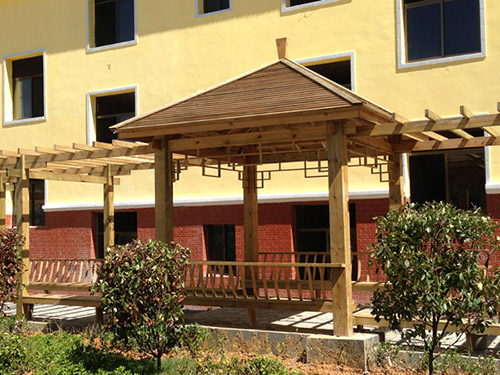 實(shí)際使用中,建議選擇經(jīng)過(guò)ACQ或CAB處理的防腐木,這類(lèi)木材的防腐劑滲透深度達(dá)8毫米以上,能確保頂棚在長(zhǎng)期日曬雨淋下保持穩(wěn)定性。搭配淺色木蠟油涂裝,可提升木材對(duì)紫外線(xiàn)的反射率,延長(zhǎng)遮陽(yáng)結(jié)構(gòu)的使用壽命,讓涼亭在炎夏持續(xù)發(fā)揮降溫遮陽(yáng)的實(shí)用價(jià)值。